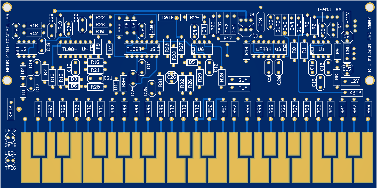 - The MFOS Mini-Controller supports four CV outputs (2 with portamento 2 without portamento) My prototype (shown) only used two.