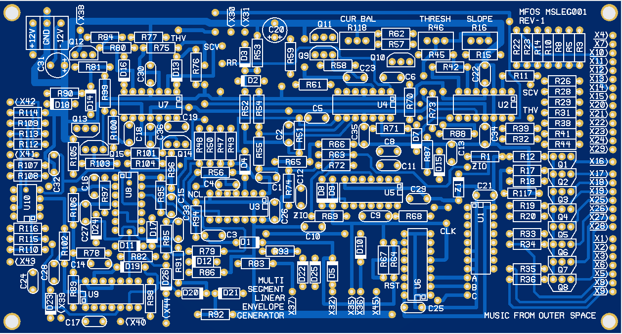 A bare PCB for the MFOS Seven Segment Envelope Generator project.