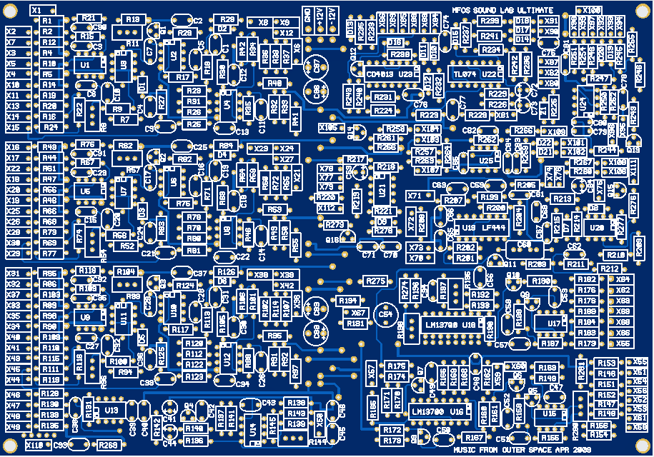 A bare PCB for the MFOS Sound Lab Ultimate project.